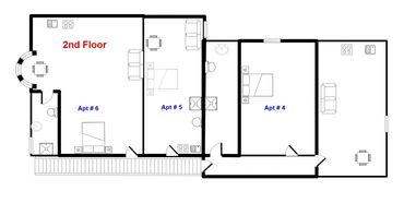 Our second floor one-bedroom apartment provides more space and privacy with a double bed in a separate bedroom and a double sofa-bed in the living area. LG smart LED TV's for catch-up in the living room & bedroom. Has a combined shower-room/WC. Rear street/alley view, 2nd floor. (247 ft2 / 22.9 m2)